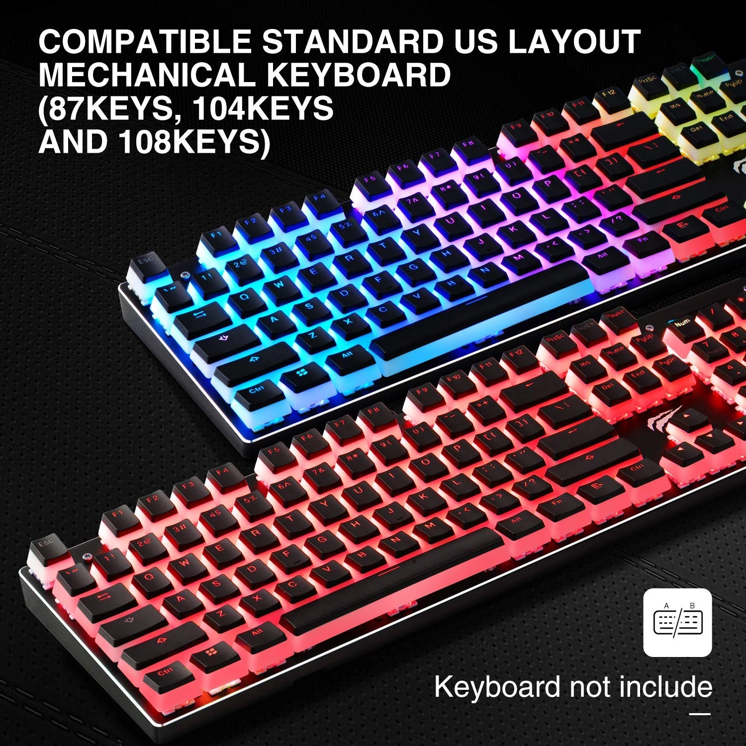 HAVIT KC22 PBT Keycaps contains all 104 keys of keyboard, compatible with most of American English mechanical keyboards that use Cherry MX or Outemu switches