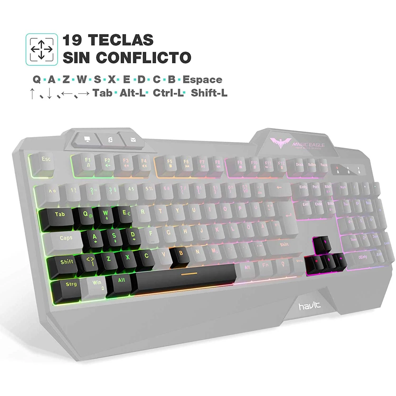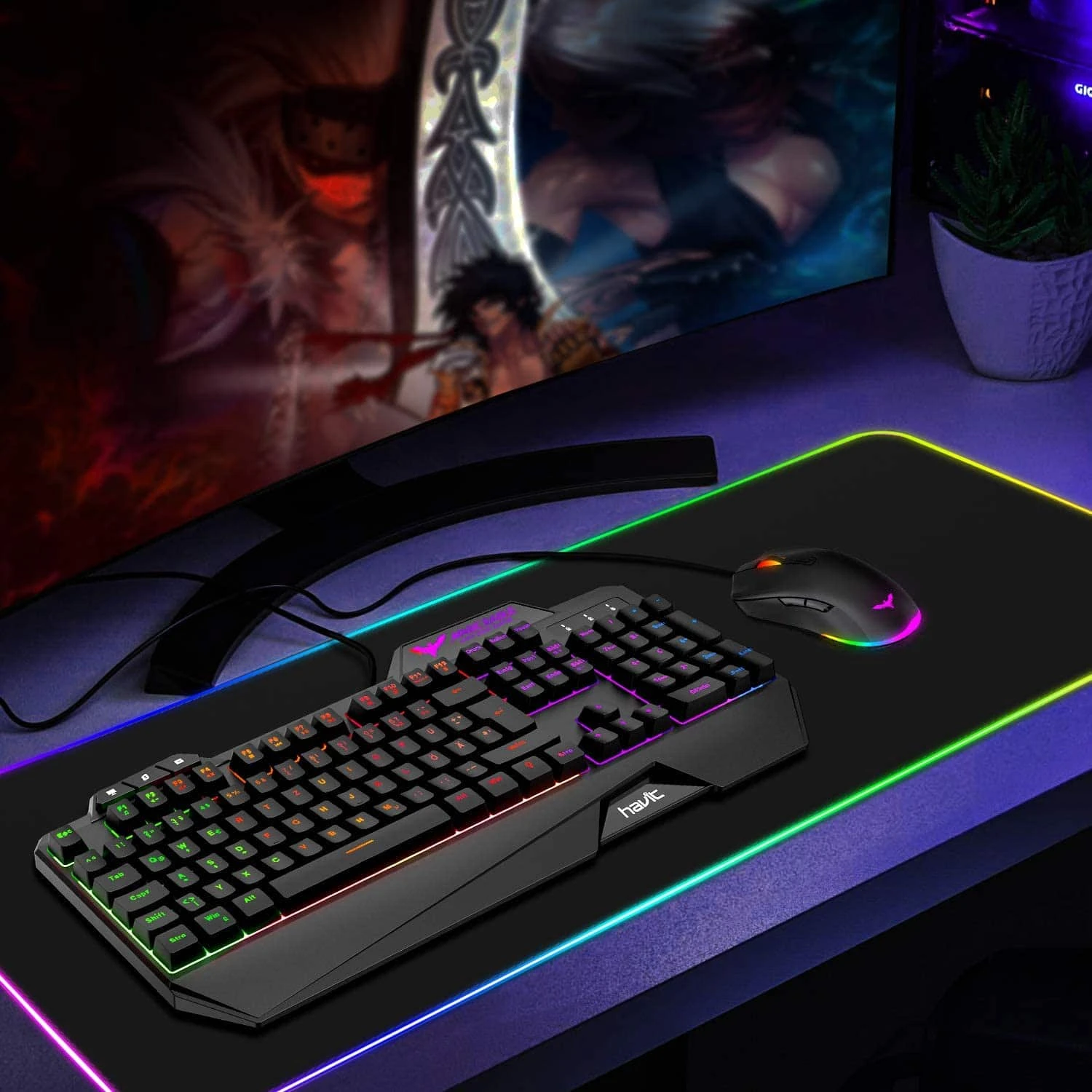 HAVIT HV-KB558CM Gaming Keyboard and Mouse Combo comes with a 104 standard keys gaming keyboard and a breathing LED gaming mouse.